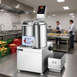Capacidad de hasta 30 Kg, efectúa pelado por abrasión que desgasta la superficie del producto por rozamiento. El abrasivo es sumamente resistente y duradero de por vida. Apto para uso alimenticio. Equipado con cuadro de mandos con pulsador de arranque, parada y temporizador de hasta 5 minutos.