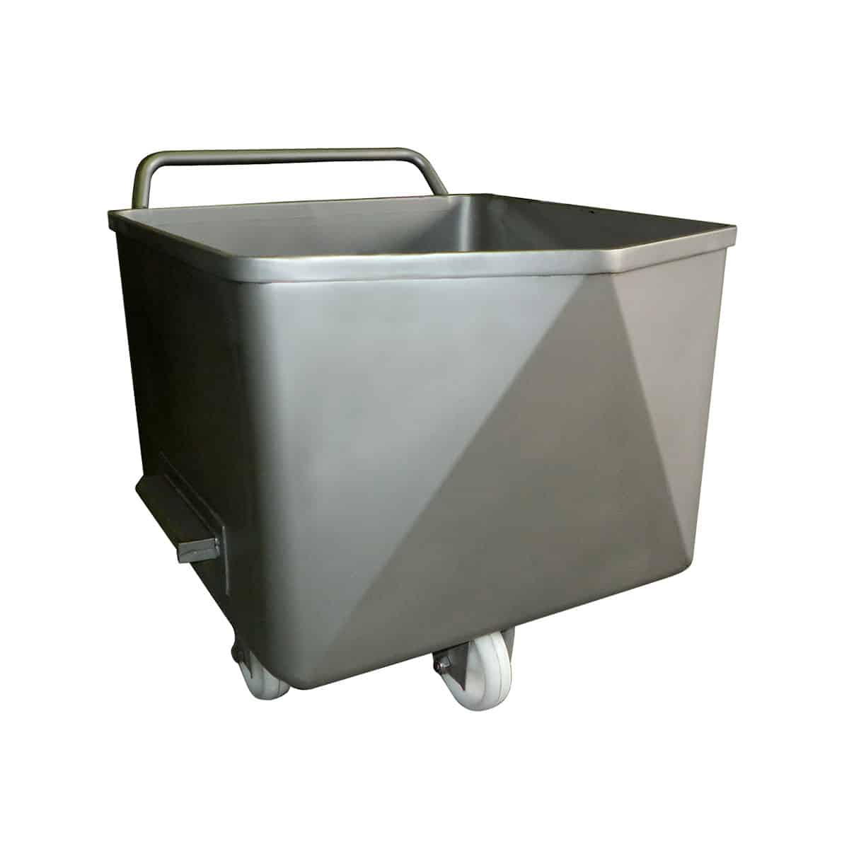 Fabricado en acero inoxidable, este carro bañera para elevador es ideal para la industria alimentaria.