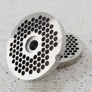 Placas en acero inoxidable para Picadoras de boca 22 con gran variedad de tamaños de orificio de salida de productos a elegir.