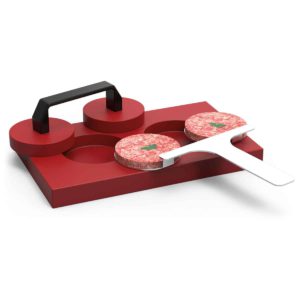 Fabricado en polietileno y acero inoxidable, este patentado diseño es ideal para la elaboración de hamburguesas de ø100-128 mm.