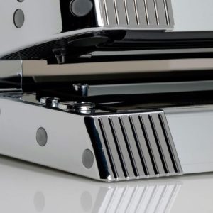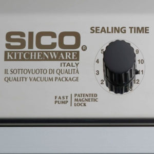 Maquina italiana de gran calidad con una súper bomba de vacío auto lubricada de 1500 W de potencia y triple soldadura, capaz de superar presiones de 0,925 bares y trabajar de forma continua con bolsas gofradas de hasta 700 mm de ancho, con los tarros normales de vacío habituales para las máquinas domésticas y con recipientes grandes de acero inoxidable tipo Vac Norm. de hasta 1/2 x 200 GN.