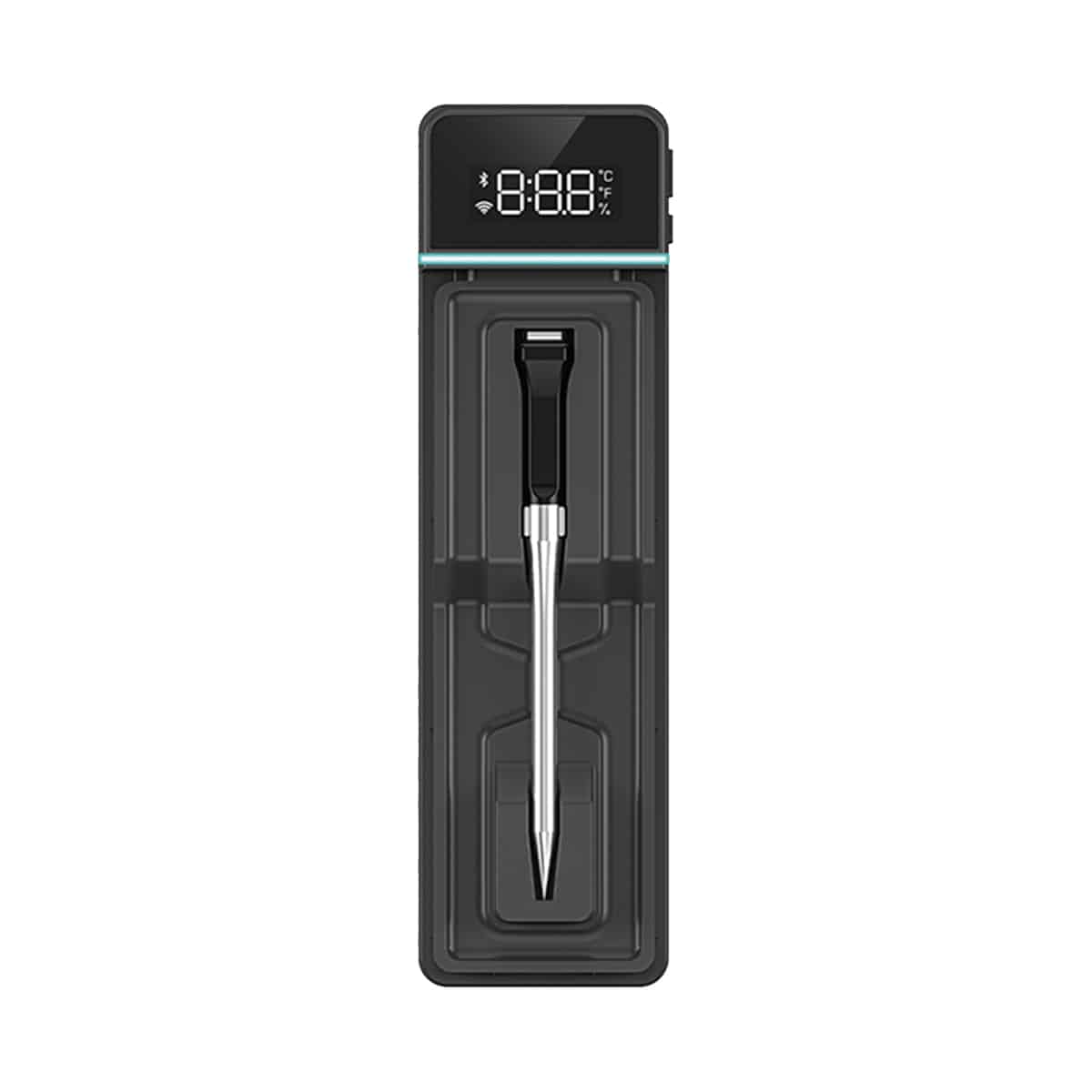 Simplemente pincha en el corazón del producto y controla sin esfuerzo en el visor de la sonda o en la APP de tu móvil la temperatura de los alimentos durante el sous víde directamente dentro de la bolsa, en la brasa directo en la carne, etc…
